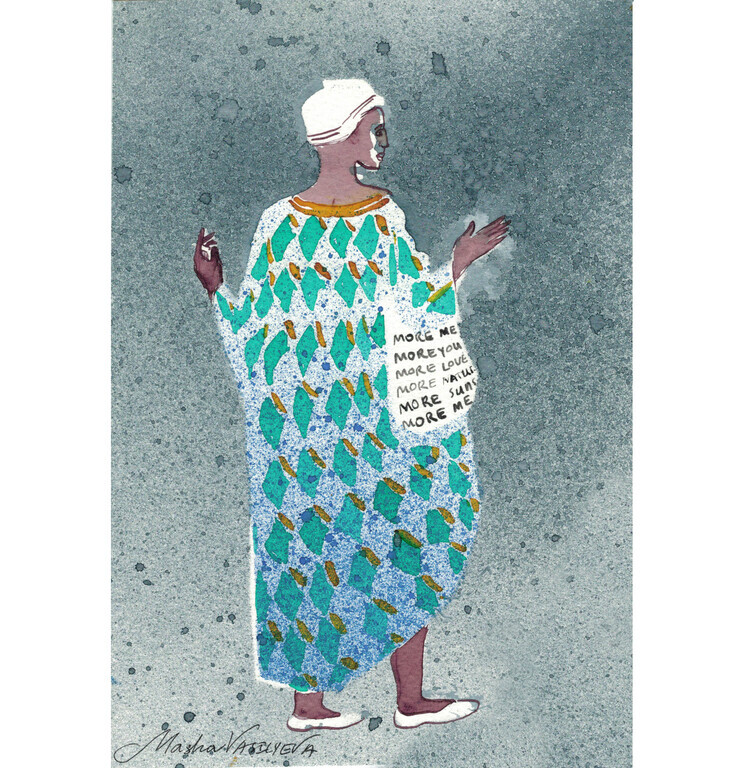 différentes, voici une femme en habit traditionnel africain, son visage en revanche exprime la