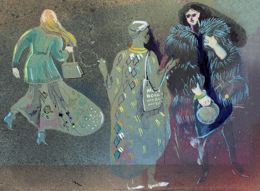 tram. Les jupes volantes printanières, les manteaux en fourrure bleu, elles sont toutes belles,