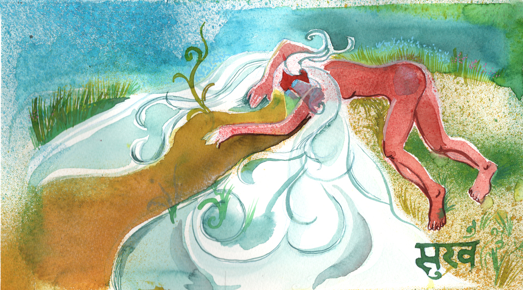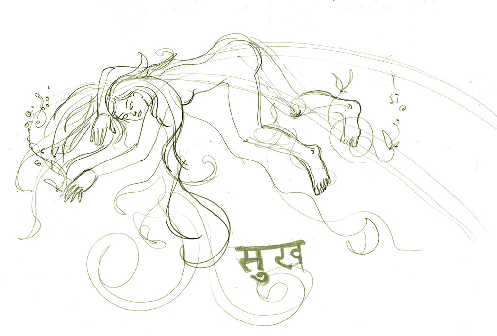 À la fin de la pratique, on tire chacun une carte, et une année je tire la carte « Sukha » (सखु ).